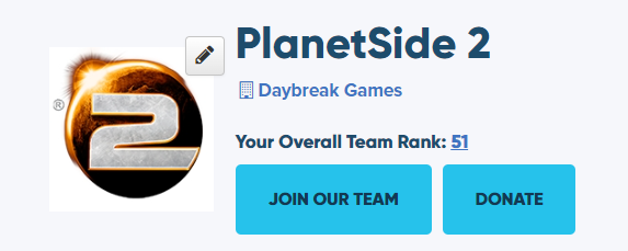 To join the PlanetSide 2 team, join via Extra Life’s website (https://www.extra-life.org/) or click "Join our team" here.