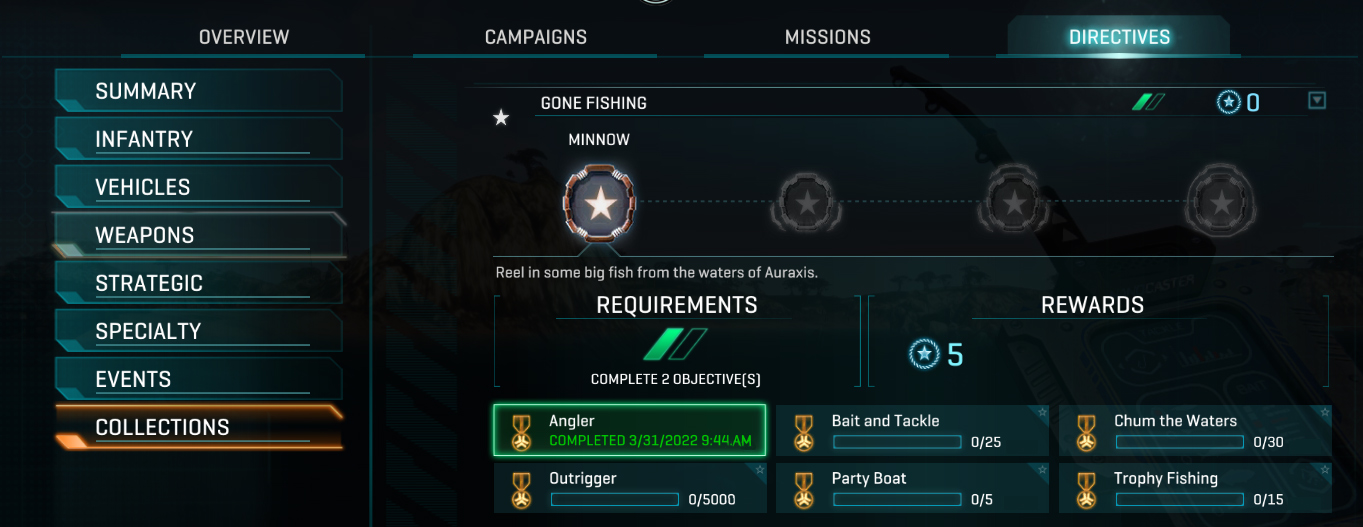 When this update rolls around, we will be taking our first steps toward introducing the serene art of fishing to PlanetSide 2.