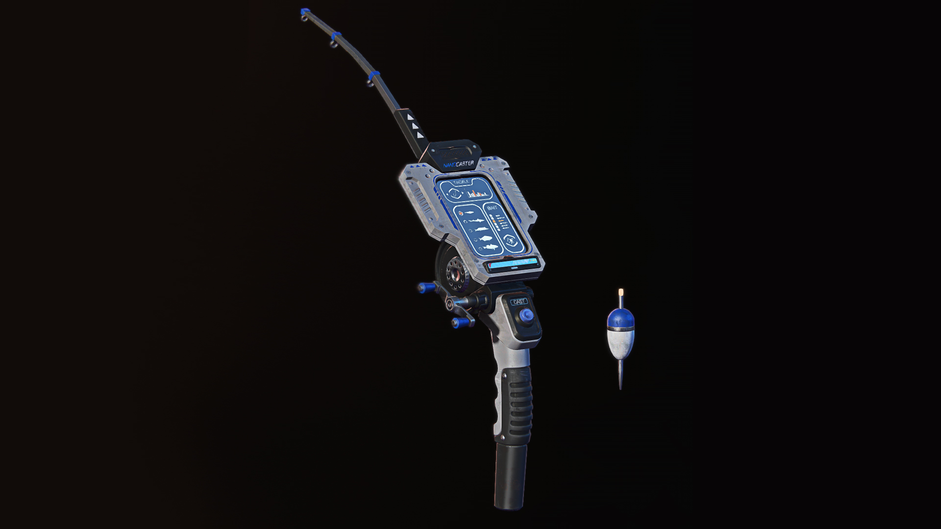 Right-click will toss the NanoBobber into the body of water. The NanoBobber will attempt to lure aquatic creatures to the device. When the NanoBobber receives a "hit," left-click to "capture" that fish.