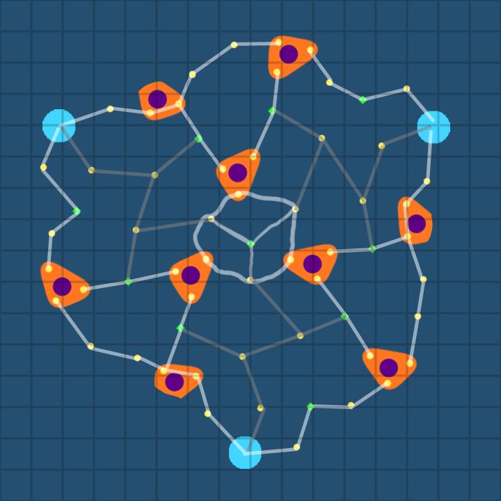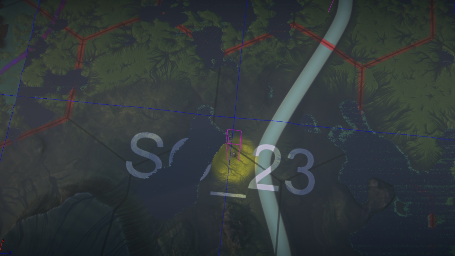 To fill out the continent we decided to try out the concept of “stampables”. We took some bases iterated them extensively and “stamped” them out in a bunch of different places. This saved us significant time without losing the density of bases that we planned for. The bases on Hossin named “Construction Site <Greek Letter>” are our stampables.