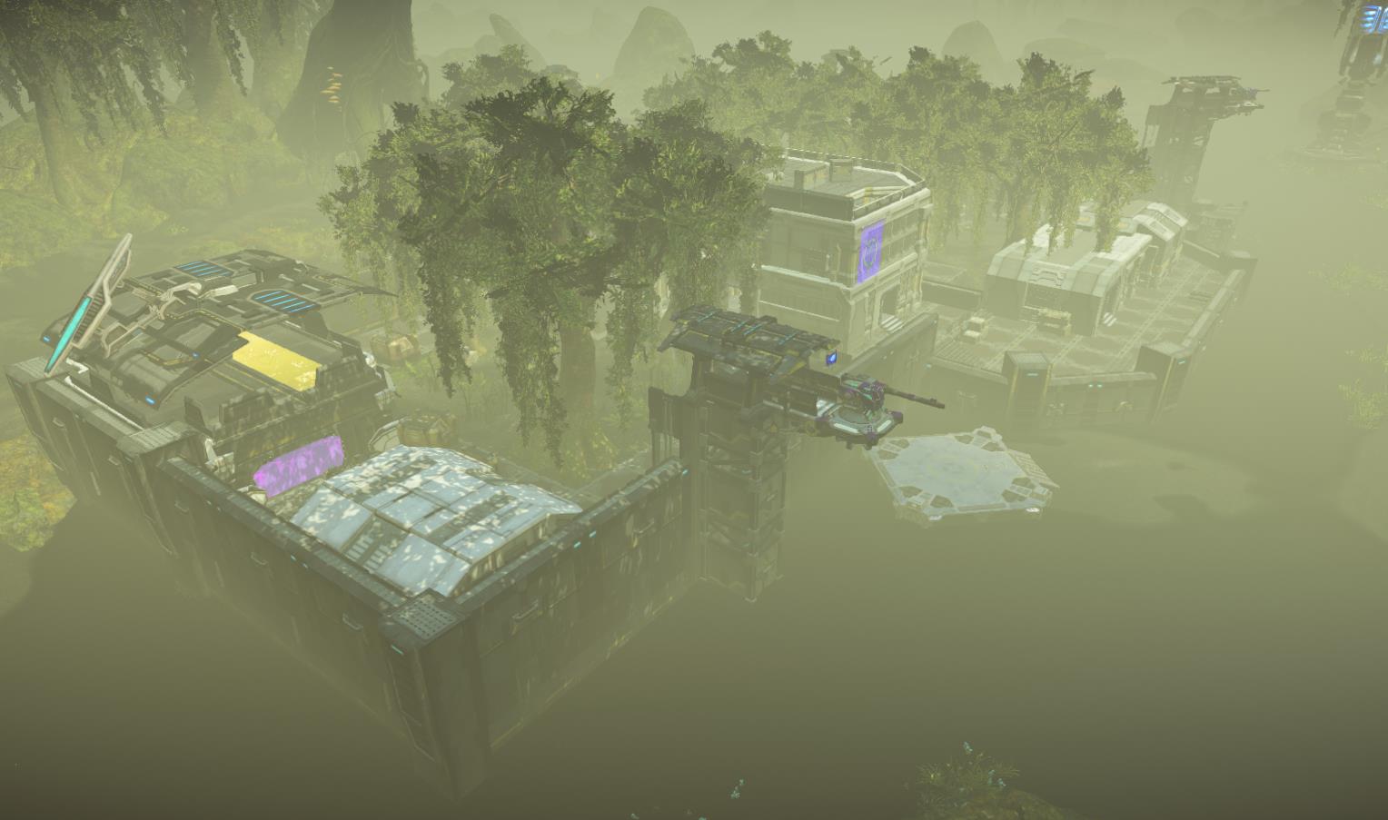 Our Level Design team strove to create bases that integrated both the water and the trees on Hossin. We knew these were the two unique elements of our new continent, so we included them in our base design as much as possible.