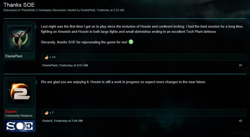 The reception of Hossin has been very positive. We are thrilled that our players like the continent, and it is only going to get better. We already have plans in place to redo the bases we consider outdated and to replace some of the stamped bases with unique designs. Time will tell, but so far our staged roll out of world content seems to be working successfully.