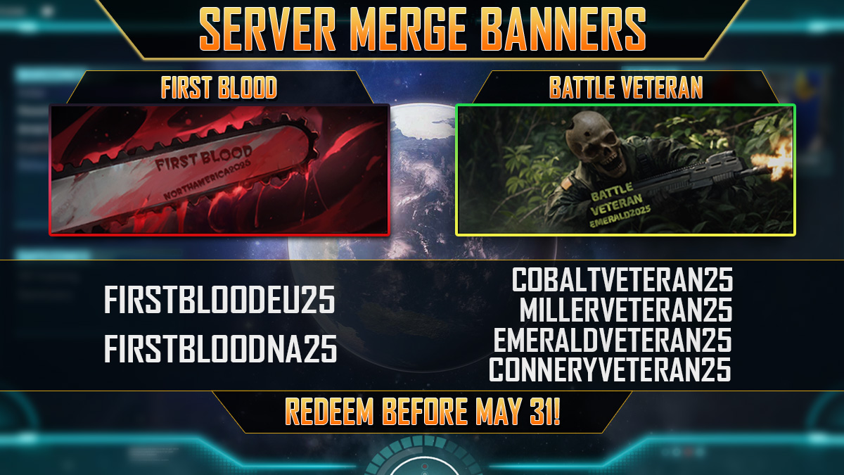 Show your allegiance to the retired Connery, Emerald, Miller and Cobalt servers. Wear them with pride, soldier!