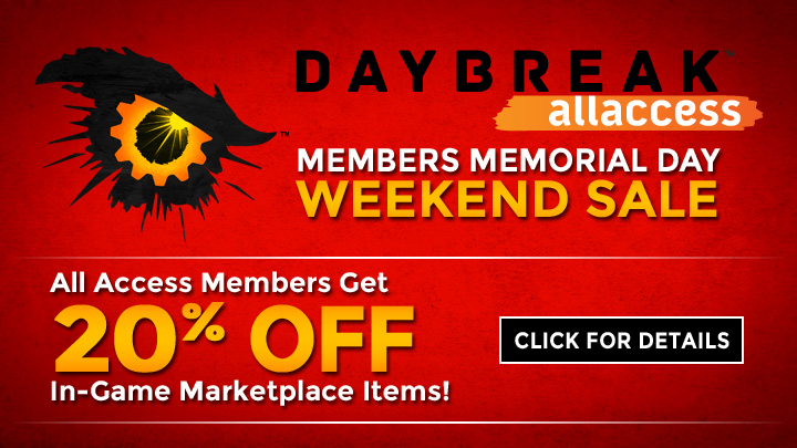 Summer has arrived here at Daybreak, and we’re cranking up the air conditioning, firing up BBQs, hitting the beach… AND giving All Access Members an even BIGGER discount off in-game items!