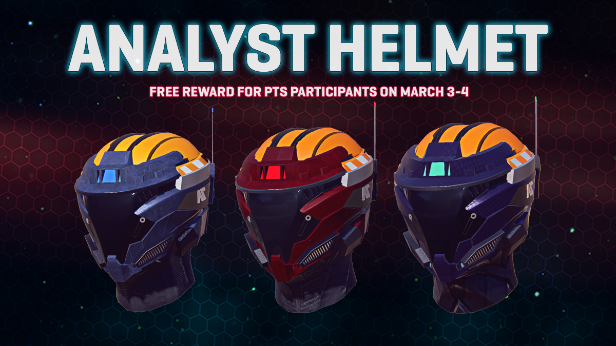 As a thank you for your participation, we're bringing back the Analyst Helmet (good for all VS/NC/TR characters) for everyone who logins during either playtest*! We need concentrated bodies to truly Test at scale - that means you! - and will grant the reward to participating accounts shortly after both playtests conclude.
