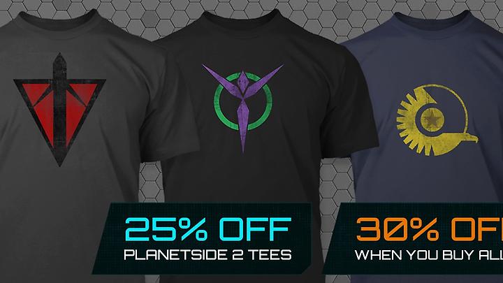 From Monday, June 22 through Monday, June 29, all PlanetSide 2 empire shirts at https://www.jinx.com/shop/coll/planetside2/ will be 25% off. Not sure if you have the honorof the Terrans, wisdom of the Vanu, or rebellious spirit of the NC? Get all THREE empire shirts and the discount goes up to 30% off!