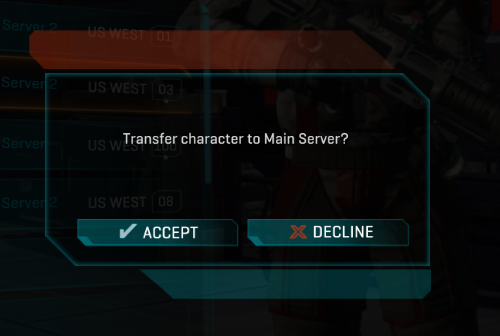 Selecting "Change Server" will lead you to a confirmation screen. You must click "Accept" will complete the transfer.