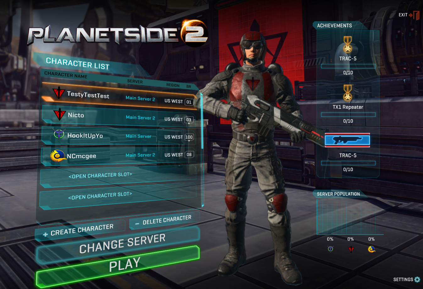 If you decide you'd like to transfer your character to SolTech, the option to "Change Server" will appear for characters that are tied to Connery.