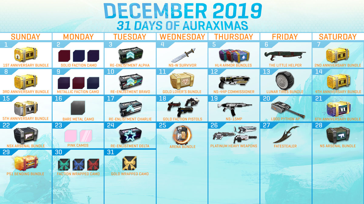 The holidays are fast approaching, so don't forget to finish your holiday shopping, soldiers! 31 days of special deals are on-going in the Depot through December 31, don't miss out on the perfect gift this Auraximas.