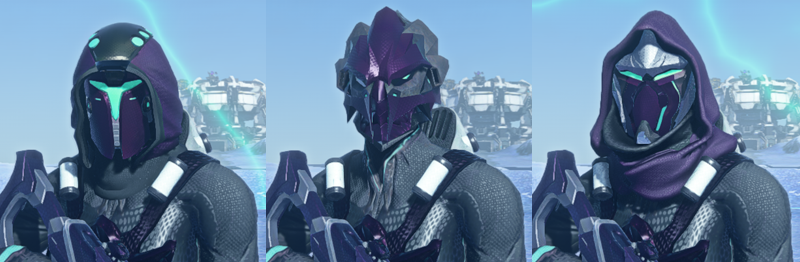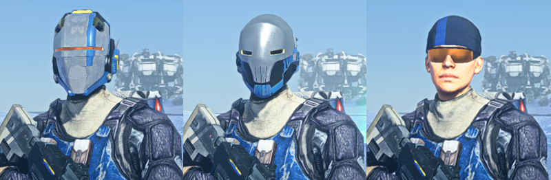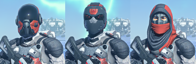 Representing the New Conglomerate are CoffeeOutlaw’s Fullmetal Scout, Evan Scott’s Death’s Head, and Confederate’s Bandana. Like the NC themselves, these helmets appear a little rough around the edges. They show some personality while still remaining mostly functional. More than any other faction, the NC focuses on individuality. Whether freedom and individualism works as a combat strategy is up for debate, but no one can deny that they look good.